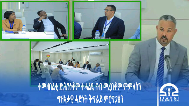 ተወከልቲ ትካል መግቢ ዓለም፣ ትካል ስደተኛታት ዓለም፣ ትካል ልምዓት ውድብ ሕቡራት መንግስትታትን ካልኦት ዓለምለኻዊ ትካላትን ኣብ ፍታሕ ተመዛበልትን ተመለስትን መሰረት ጌሮም ምስ ኣመራርሓ ግዝያዊ መንግስቲ ትግራይ ኣብ ዘሳለጥዎ ዘተ ብተወሳኺ ኣብ ዳግመ ሕውየትን ህንፀትን ትግራይ ብፅሒቶም ንምፍፃም ቑሩባት ምዃኖም ቤት ፅሕፈት ፕረዚደንት ሓቢሩ።