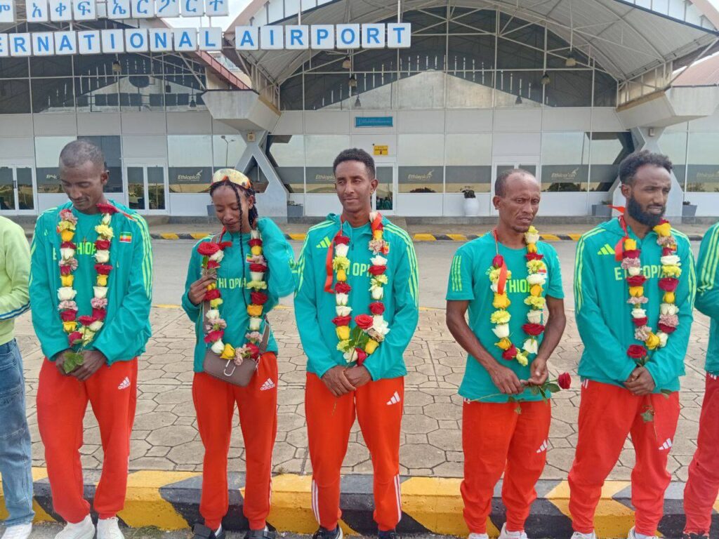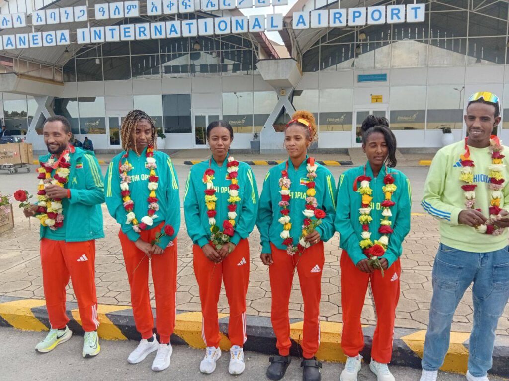 ኣብ ኣህጉርና ኣፍሪካ ሃገረ ርዋንዳ ንፈለማ እዋን ኣብ ዝተኻየደ ሻምፕዮና ብሽክሌተኛ ዓለም 2025 ንሃገራዊት ጋንታ ኢትዮጵያ ብምውካል ብሉፅ ውፅኢት ዘመዝገቡ ተጋሩ ብሽክሌተኛታት ኣብ መዕረፎ ነፈርቲ ኣሉላ ኣባ ነጋ ምስ በፅሑ ድሙቕ ኣቀባብላ ተጌርሎም ።